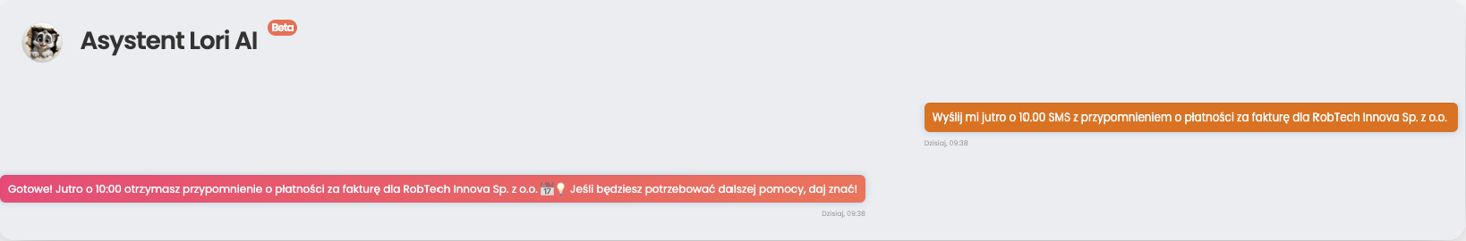 Wystarczy, że wydasz konkretne polecenie prostym, naturalnym językiem, a nasz wirtualny Asystent Lori AI nie tylko przejmie wiele rutynowych obowiązków, ale również stanie się twoim nieocenionym partnerem do rozmów i burzy mózgów.